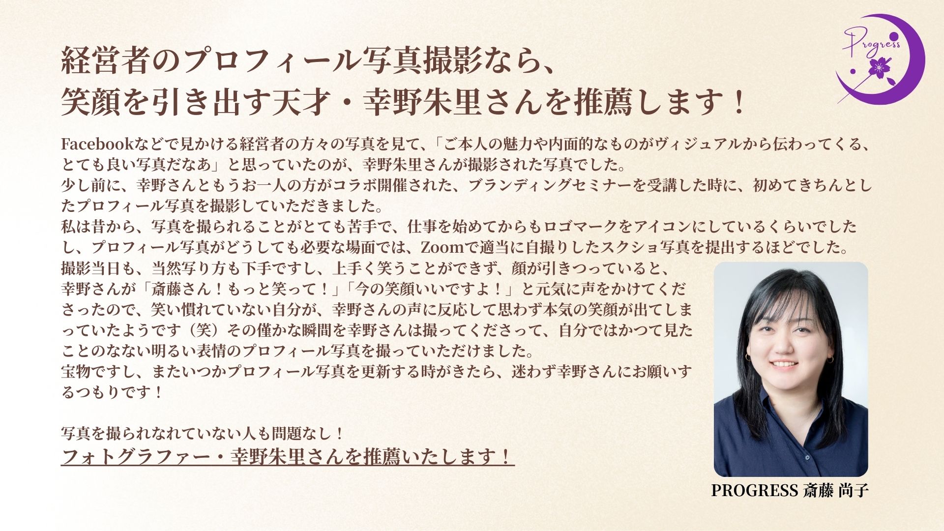 | 専門分野 | 経営者ブランディングフォトグラファー |