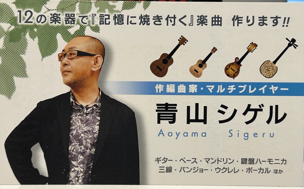 | 1.名前とプライベート情報 | 青山 シゲル(本名:青山 繁) 出身地:兵庫県芦屋市(現在は東京都在住) 家族構成:妻と2匹の猫(離れて暮らす前妻との娘あり) 趣味:映画、沖縄旅行 その他:東京、千葉、神奈川にて三線ライブ展開中 |