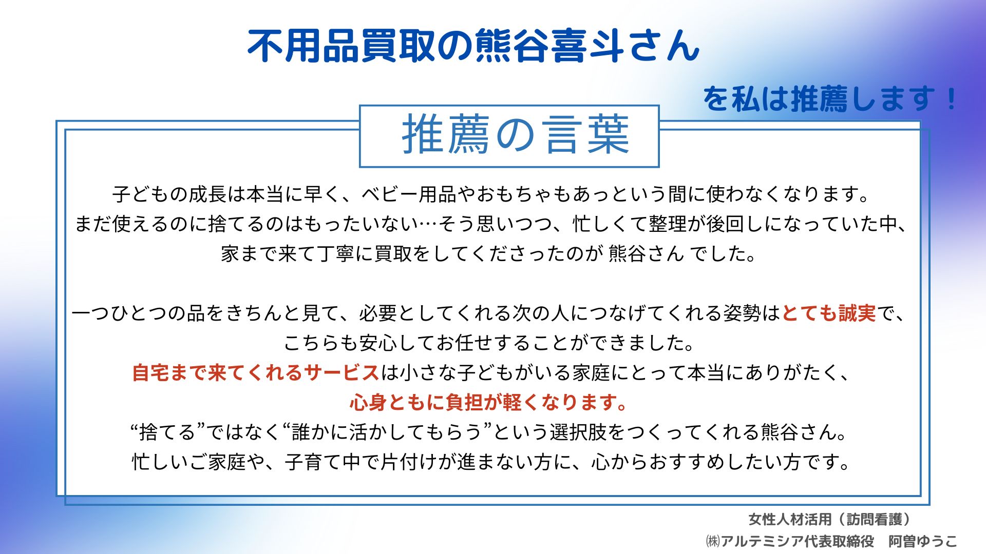 | 専門分野 | 不用品買取 |