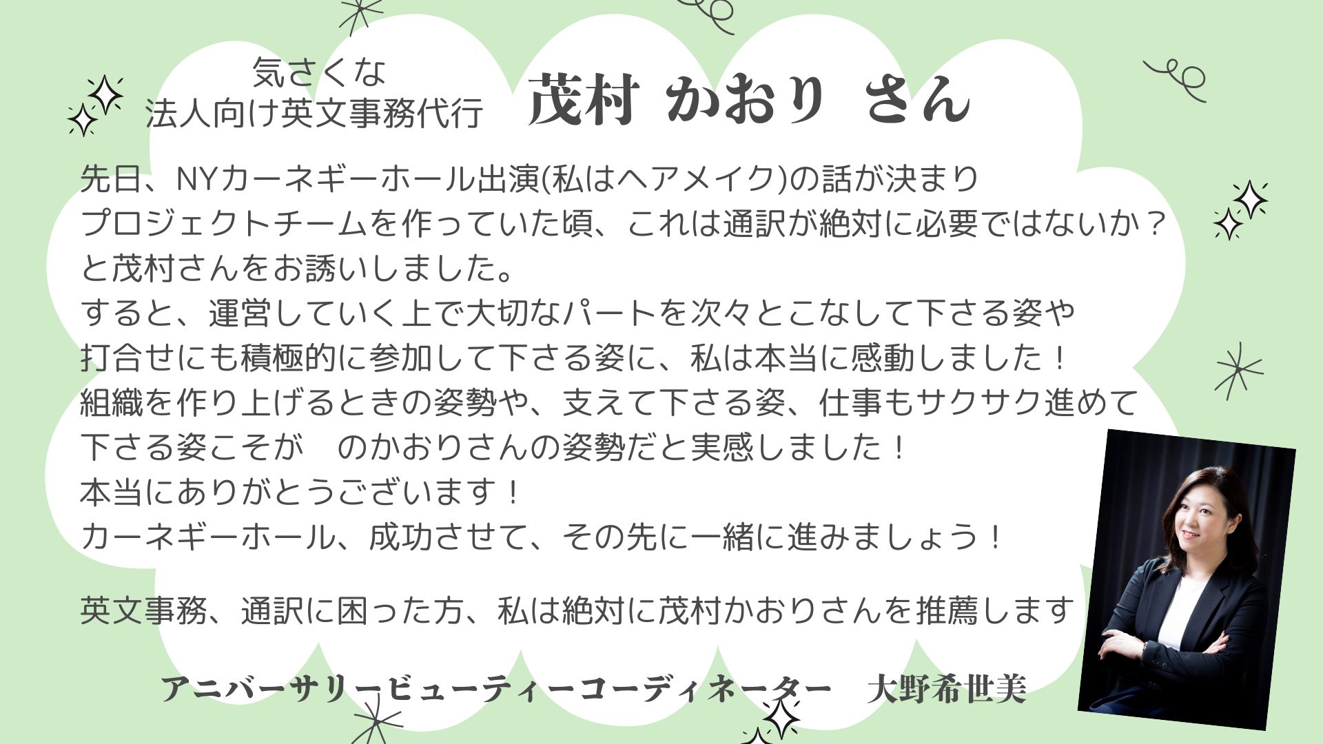 茂村さん!9期の1to1担当として、チャプターを盛り上げてくださり本当にありがとうございます! 朝活そして夜活と、毎週同じ時間に開催をし続けていただく事、 そして更に盛り上げるための企画など、場所を作ってくださり感謝です。 来期は対面イベント担当として、またご活躍が楽しみです! これからも、どうぞよろしくお願い致します。海外の展開も一緒にさせていただけるように頑張ります!!!!!!