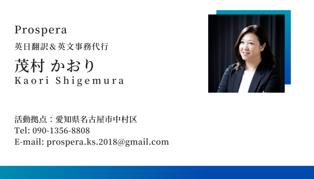 | Skill(スキル) | ビジネス翻訳・通訳経験10年以上 TOEIC900点 高校教諭第一種免許(英語・国語) 日本語教育能力検定試験合格 漢字検定2級 ホームヘルパー2級 |