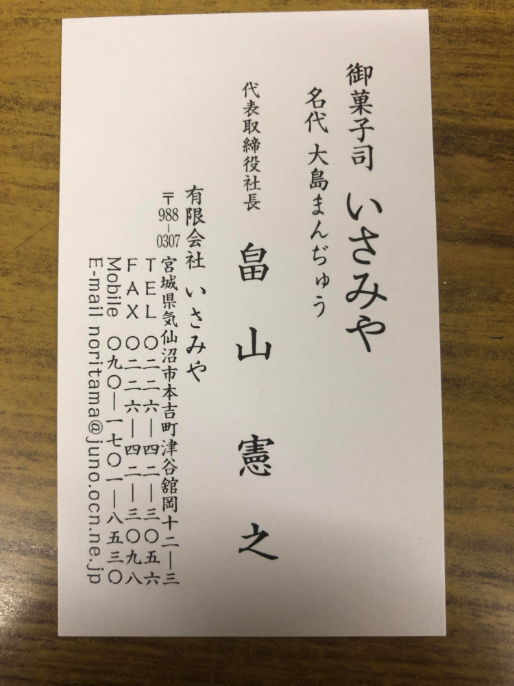 | 2.会社名・役職 | 有限会社いさみや 代表取締役 |