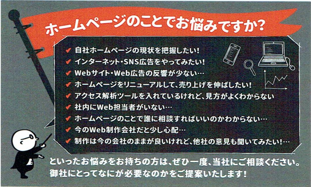 ホームページの仕事の話をした時は。いつも的確な回答をしていただき、ありがとうございます。 ちょっとしたことも丁寧にわかりやすく教えていただき、今後の対策まで言っていただけるので、助かっています。