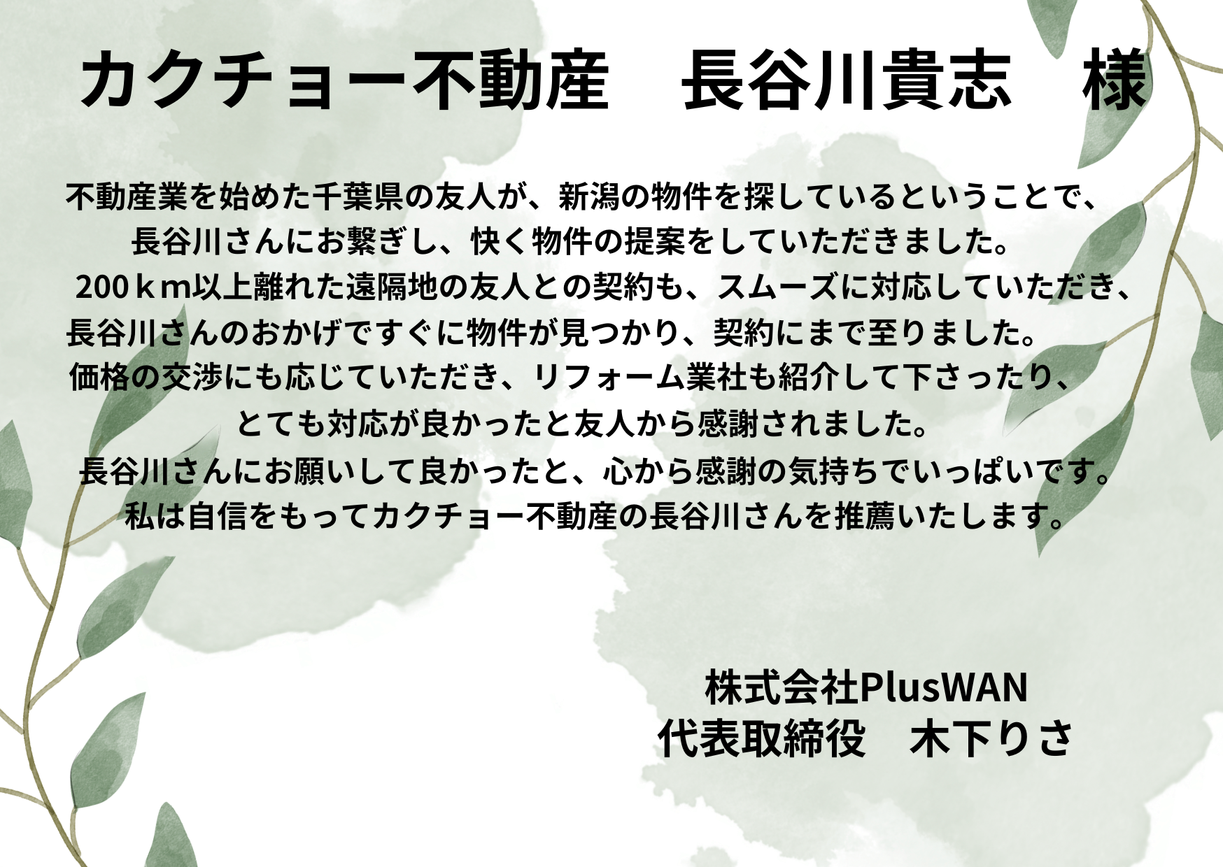 | Skill(スキル) | 宅地建物取引士 賃貸不動産経営管理士 関連会社 長谷川工務店・ハセガワ建築設計事務所 |