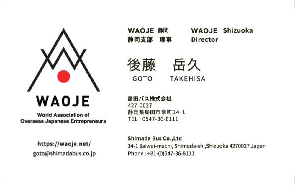| Networks(人脈) | 旅行業としての幅広い顧客 商工会議所青年部(島田YEG・静岡YEG)のネットワーク 日本商工会議所青年部 令和5年度 専門委員(組織活性化委員会) 日本商工会議所青年部 令和7年度 専門委員(グローバルネットワーク委員会) WAOJE 静岡支部 理事(立ち上げメンバー) ※WAOJEとは 海外を拠点とする日本人起業家のネットワークです。 都市を単位としながら、世界中に活動拠点を増やしています。 世界各地で、現地に根を張り、現地の方々を相手にビジネスをしている日本人起業家が、 都市や国を越えてつながることで、有意義な出会いや新たなビジネスチャンスを生み出すことを 目的としています。 |