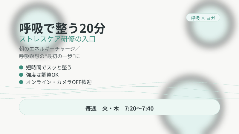 このセミナーでは、呼吸で自律神経を整えることを軸に、企業向けストレスケア研修で行っている内容を、20分でやさしく体験できる形に凝縮しました。