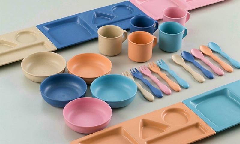 リーフテーブルウェアは笹の葉をプラスチックに混ぜ合わせた素材で