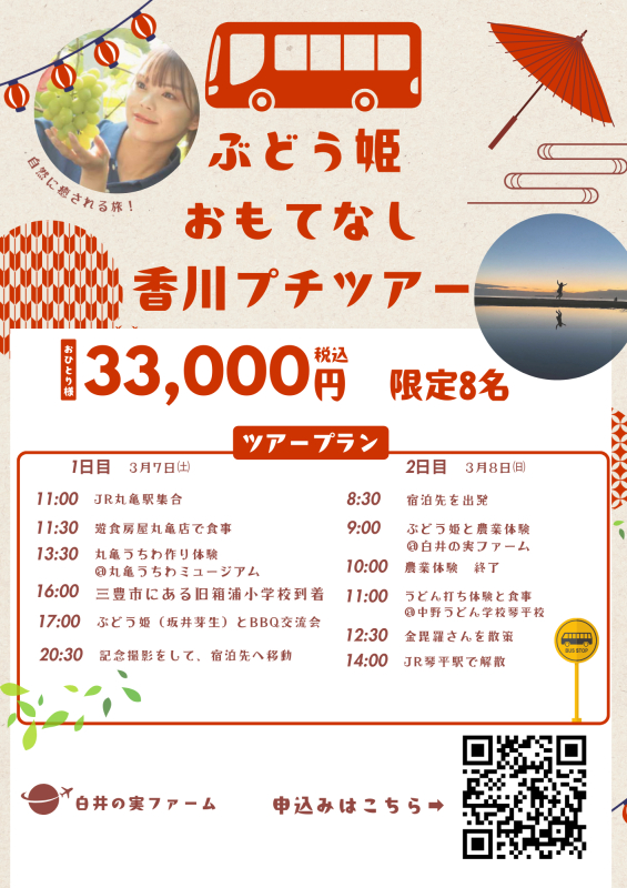 ツアー名:ぶどう姫おもてなし香川プチツアー