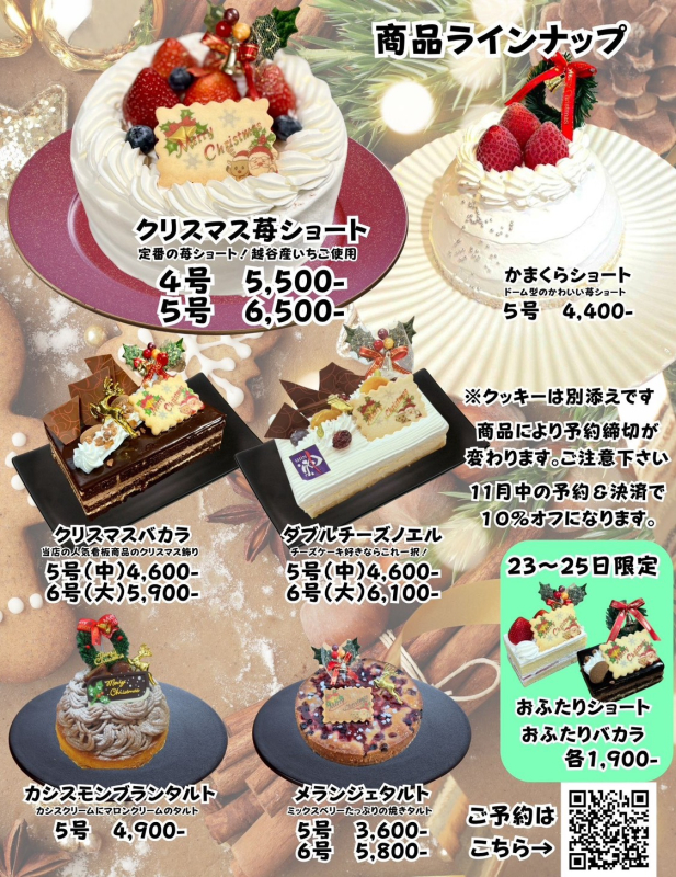 ケーキは12月16日~12月25日のお日にち指定でご用意いたします。