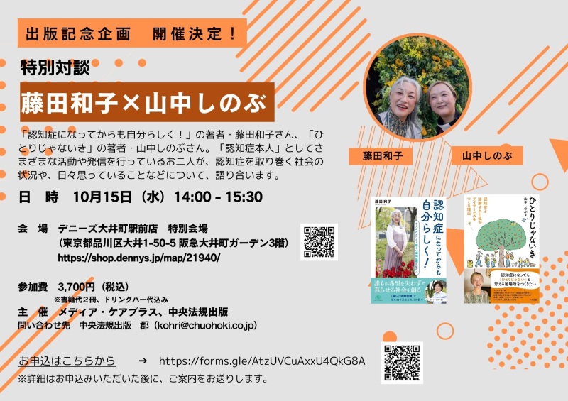 弊社新刊『認知症になってからも自分らしく!』著者の藤田和子さんと『ひとりじゃないき』著者の山中しのぶさん。
