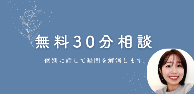「お問い合わせ」からご連絡またはFacebookメッセンジャーにて「30分相談希望」とお送りください。