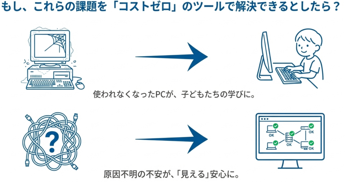 職員がパソコンの直し方を覚えることで、将来のコストを削減できる