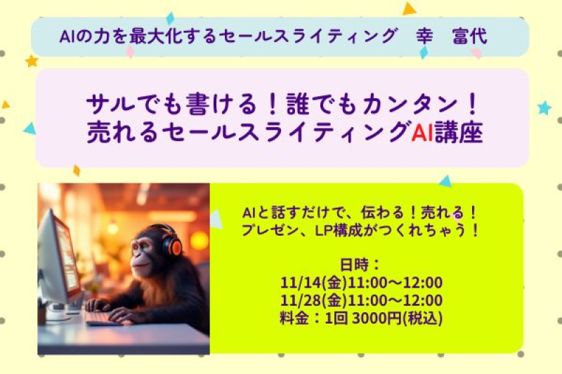●12/05(金)19:00~20:00(19:30~20:00交流会)楽々プレゼン&LPサイトganmaAIを学ぼう●12/12(金)19:00~20:00(19:30~20:00交流会)画像からインスタ投稿文をつくろう!