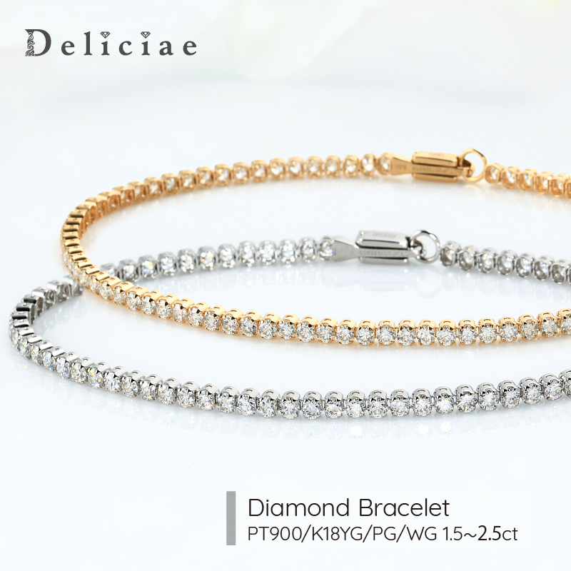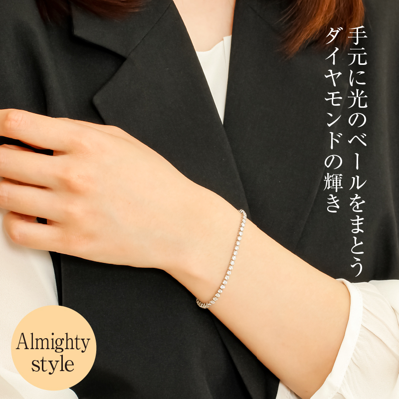 一周ライン状に並んだダイヤモンドが、端正な表情をもつブレスレットです。